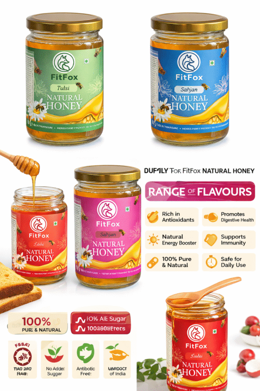 FitFox Litchi & Tulsi Honey Combo Pack – Healthy Bhi Tasty Bhi
